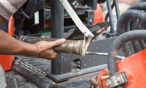 Une fuite d’huile apparaît sous l’engin après une journée de chantier, faut-il arrêter l’activité ?